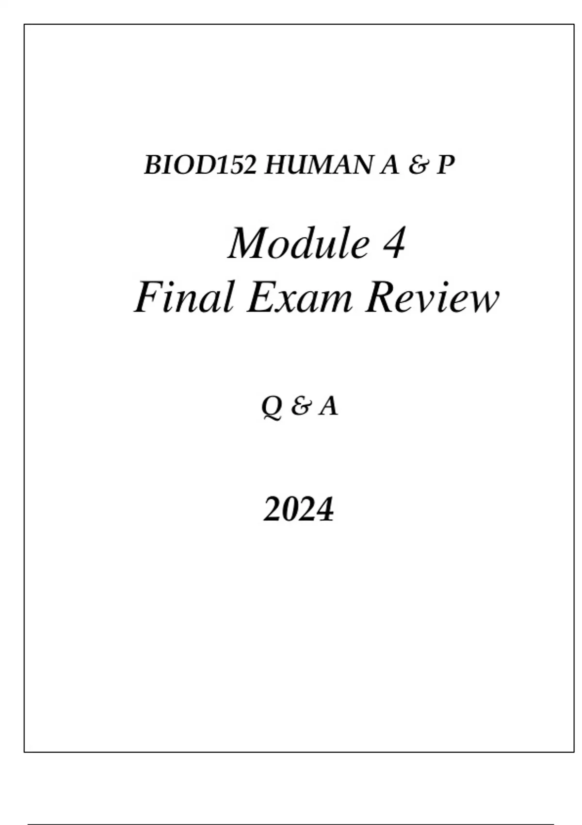 BIOD152 ESSENTIALS IN HUMAN A & P MODULE 4 FINAL EXAM REVIEW Q & A 2024.