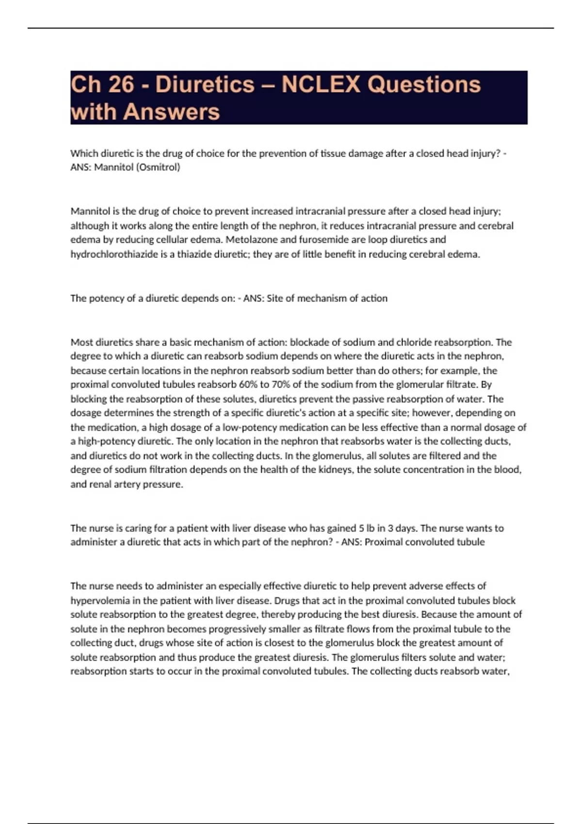 Ch 26 - Diuretics – NCLEX Questions with Answers