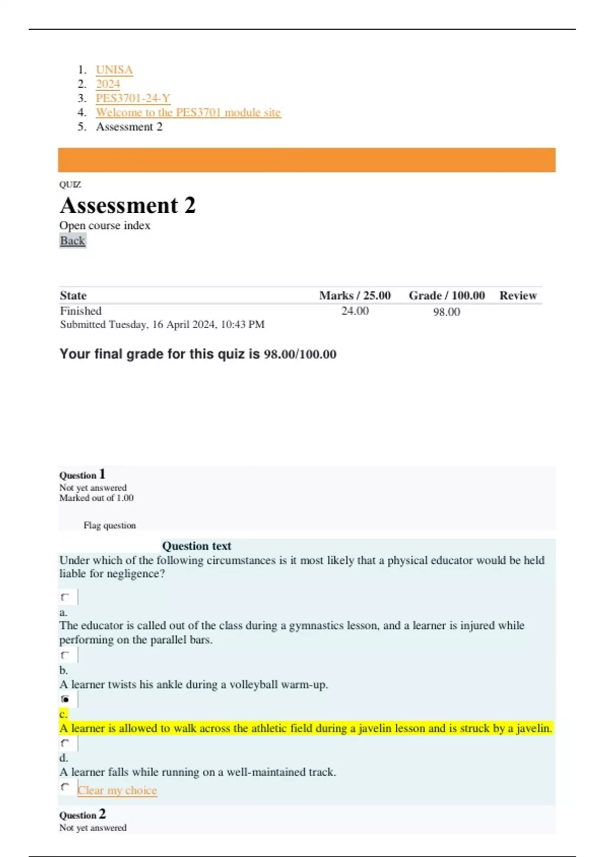 Under which of the following circumstances is it most likely that a physical educator would be held