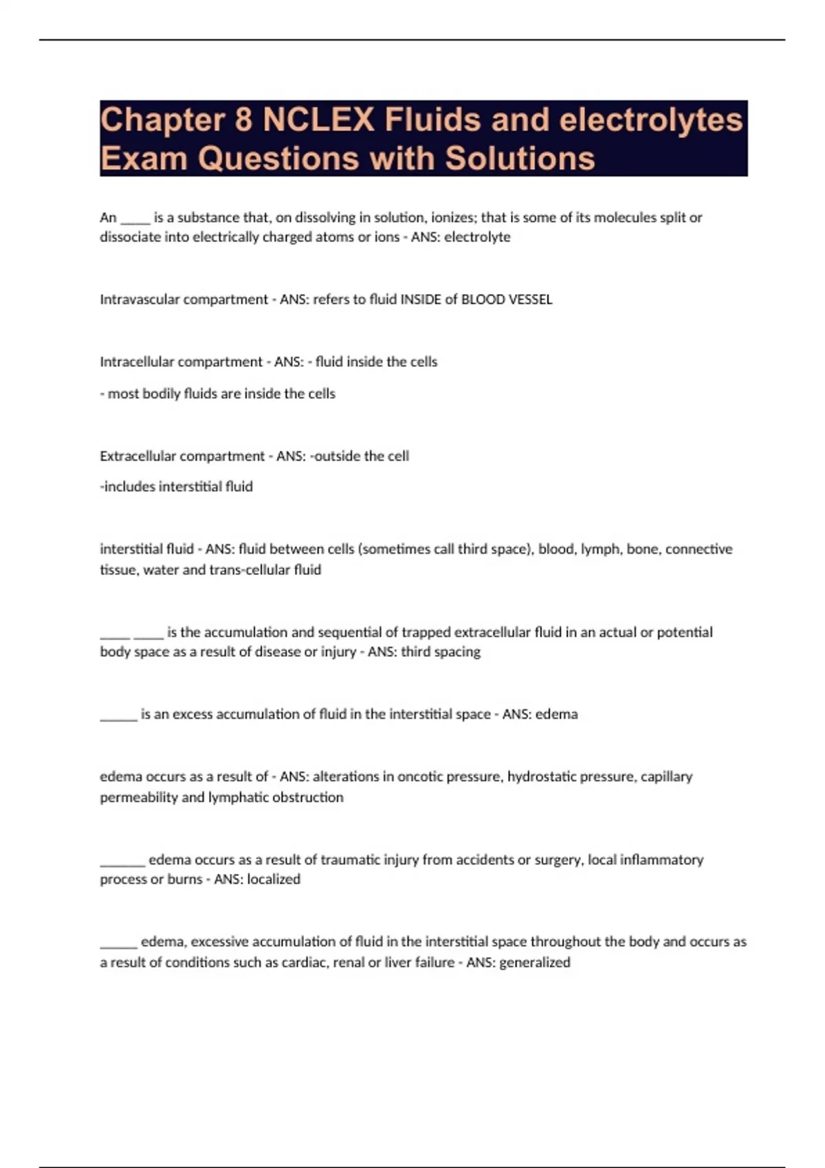 Chapter 8 NCLEX Fluids and electrolytes Exam Questions with Solutions