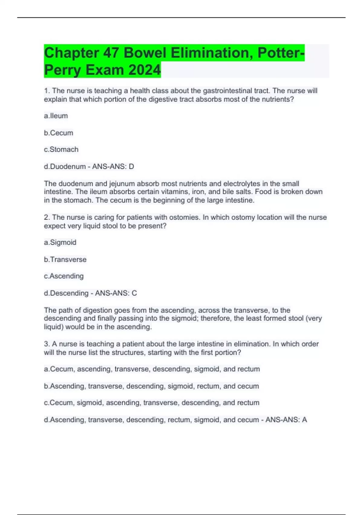 Chapter 47 Bowel Elimination, Potter-Perry Exam 2024