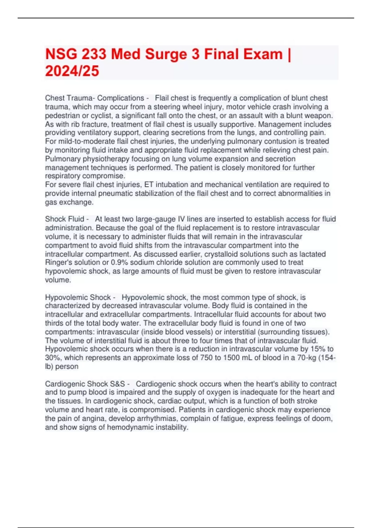 NSG 233 Med Surge 3 Final Exam | 2024/25