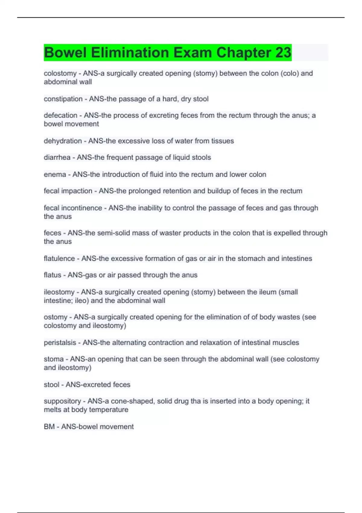 Bowel Elimination Exam Chapter 23