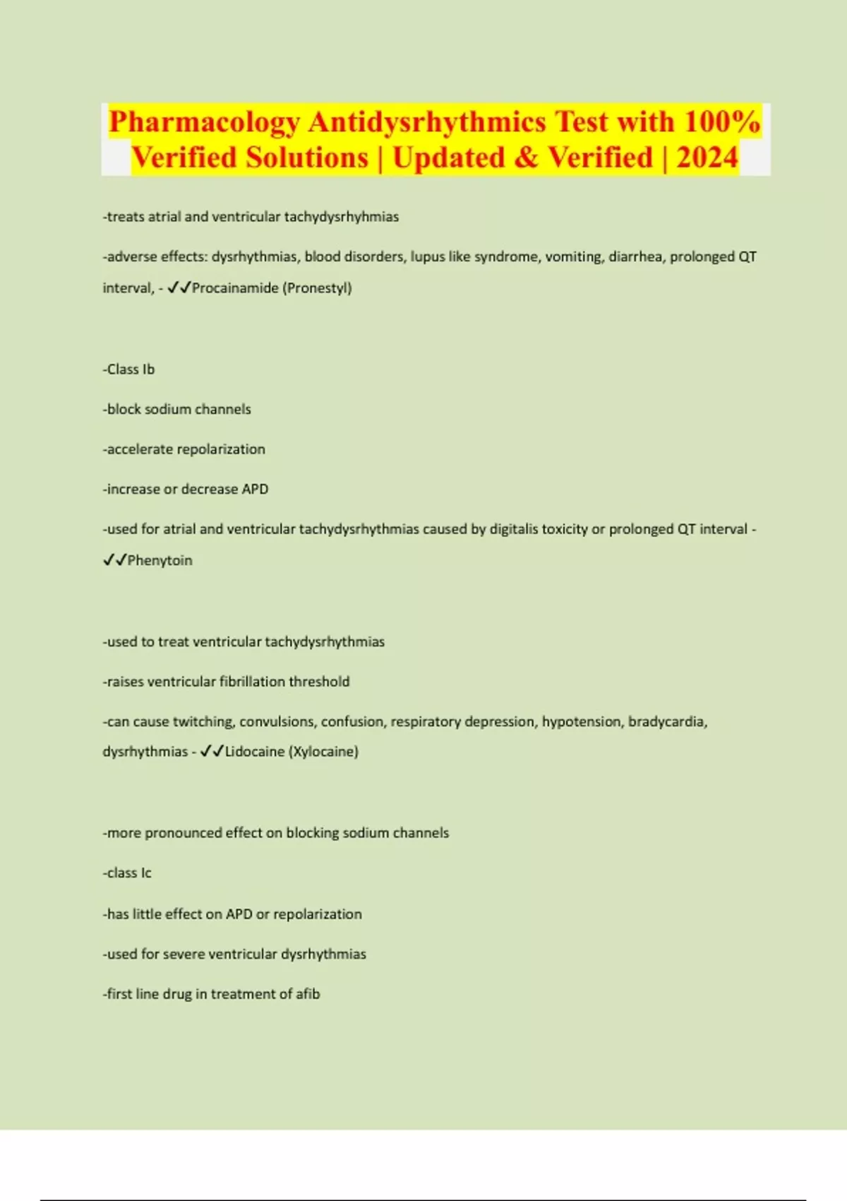 Pharmacology Antidysrhythmics Test with 100% Verified Solutions | Updated & Verified | 2024