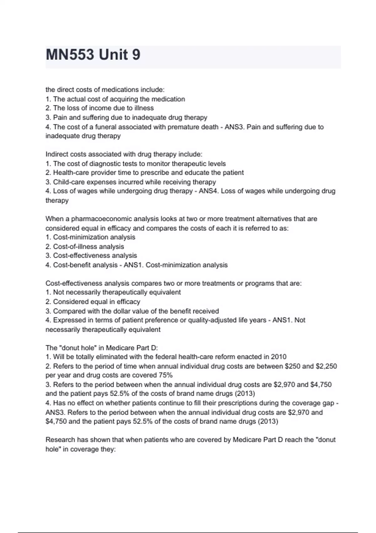 Research has shown that when patients who are covered by Medicare Part D reach the "donut