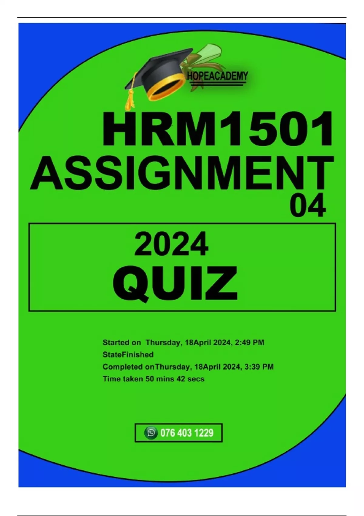HRM1501 ASSIGNMENT 4-QUIZ 2024 MCQ WELL ANSWERED