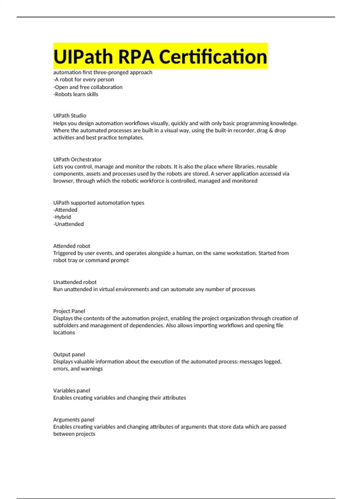 UiPath Certification Exam Study Guide Questions and Answers (2024 / 2025) (Verified Answers)