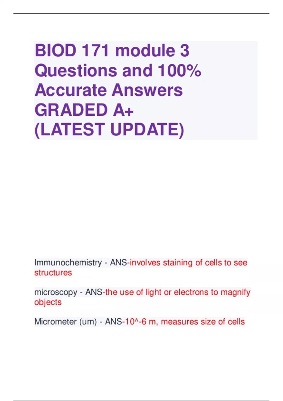 BIOD 171 module 3 Questions and 100% Accurate Answers GRADED A+ (LATEST UPDATE)