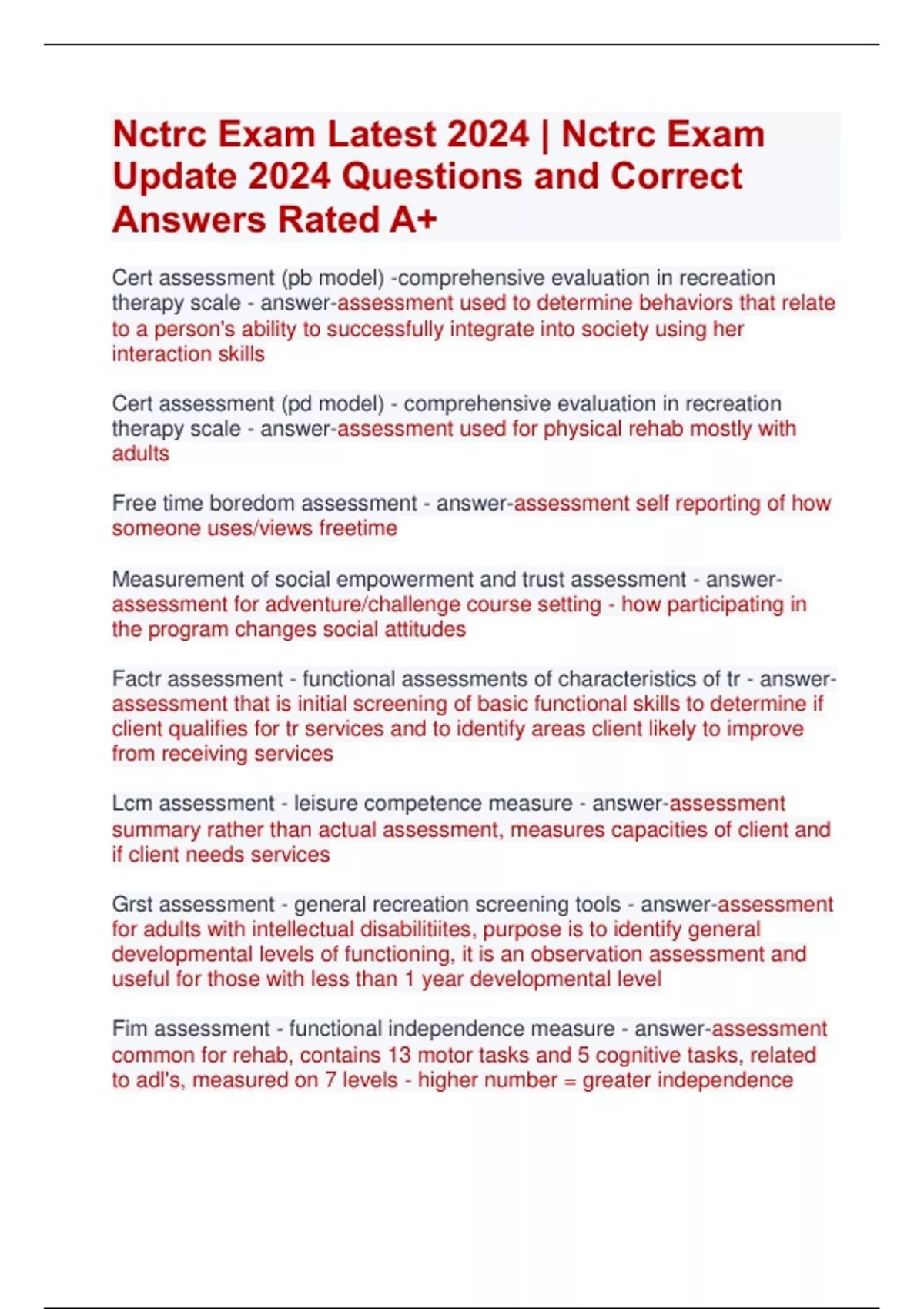 NCTRC EXAM 2024 | NCTRC PRATICE EXAM NCTRC STUDY EXAM 2024 QUESTIONS AND CORRECT ANSWERS RATED A+
