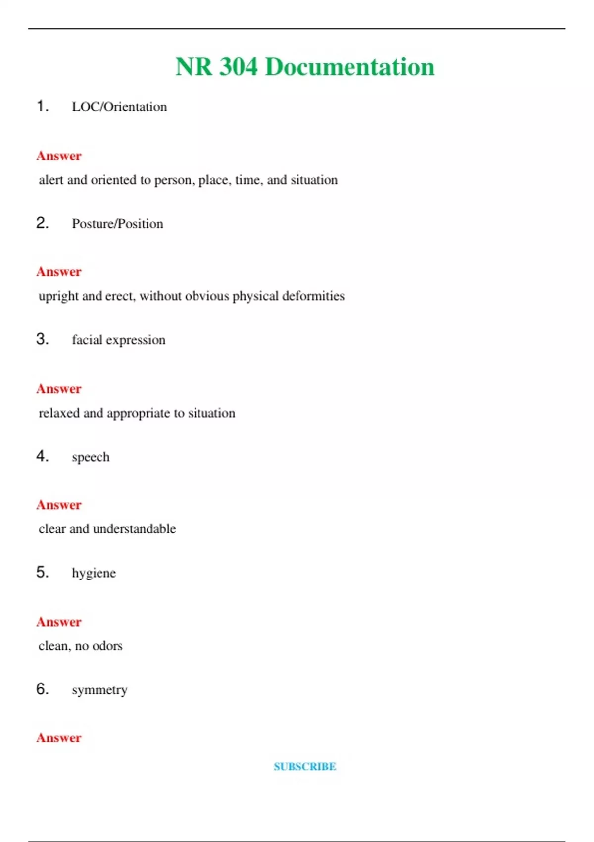 NR 304 Documentation (Latest 2024 / 2025) Questions and Answers (Verified Answers)