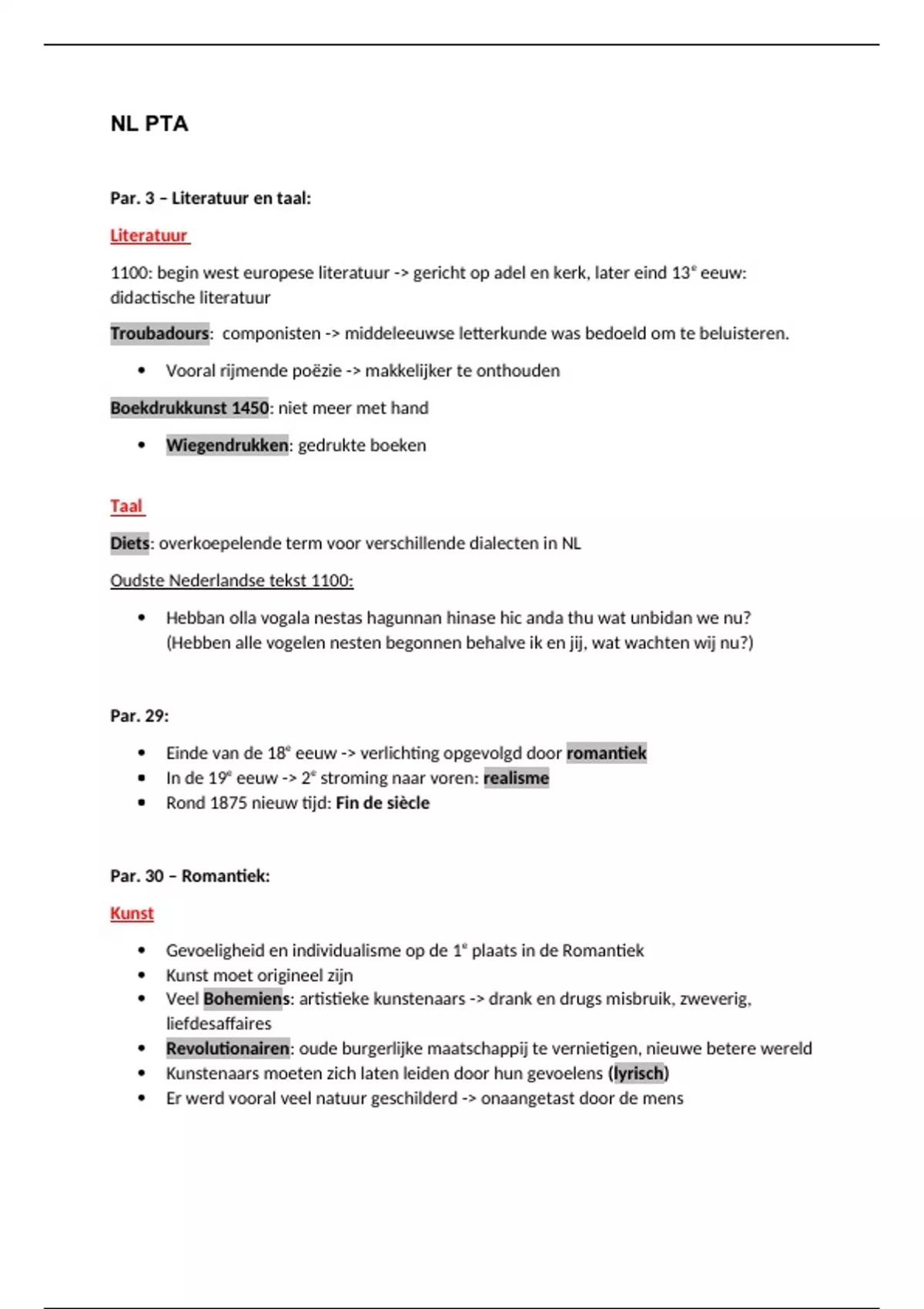 Par. 3 – Literatuur en taal: