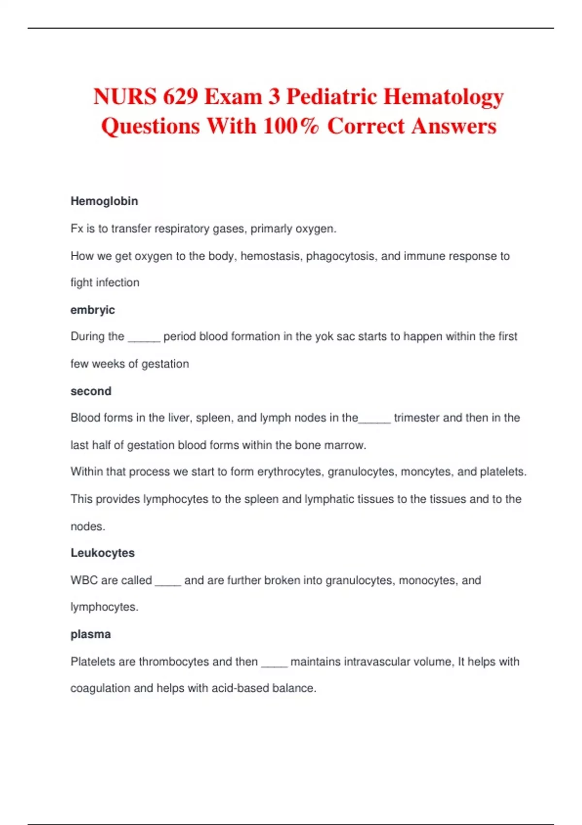 NURS 629 Exam 3 Pediatric Hematology Questions With 100% Correct Answers