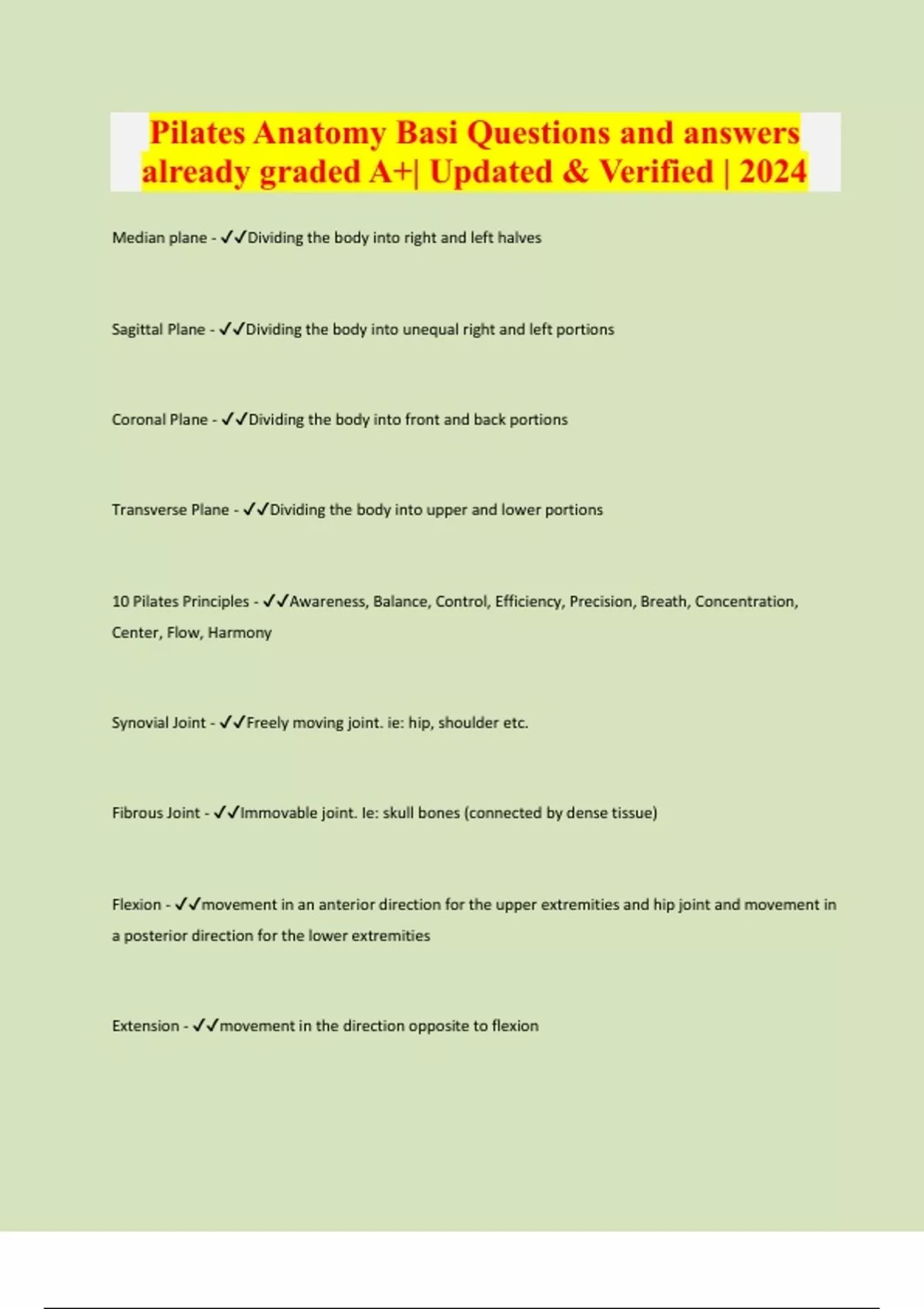 Pilates Anatomy Basi Questions and answers already graded A+| Updated & Verified | 2024