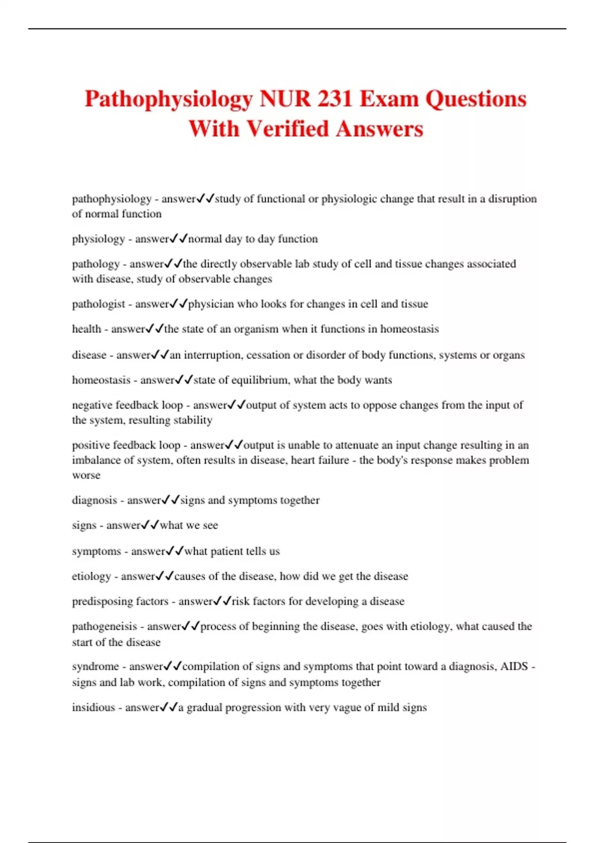 Pathophysiology NUR 231 Exam Questions With Verified Answers