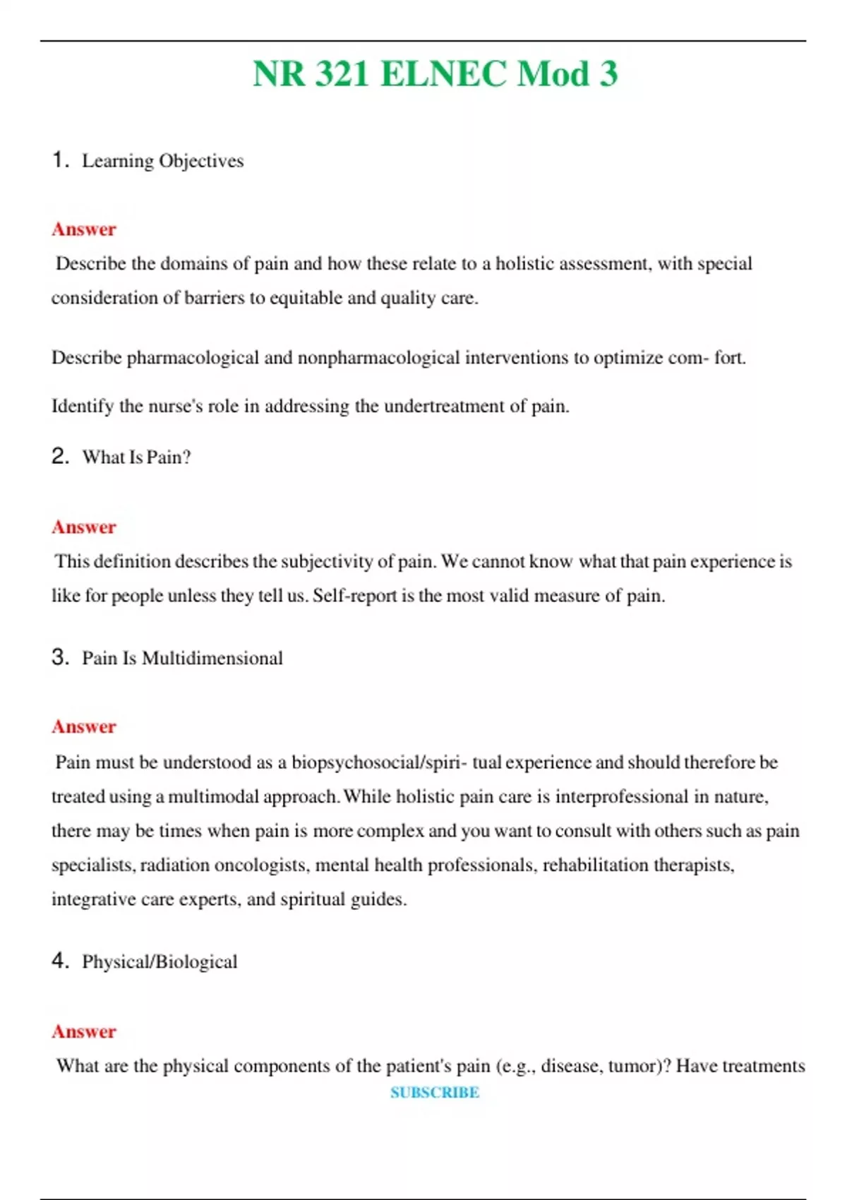 NR 321 ELNEC Mod 3 (Latest 2024 / 2025) Questions and Answers (Verified Answers)