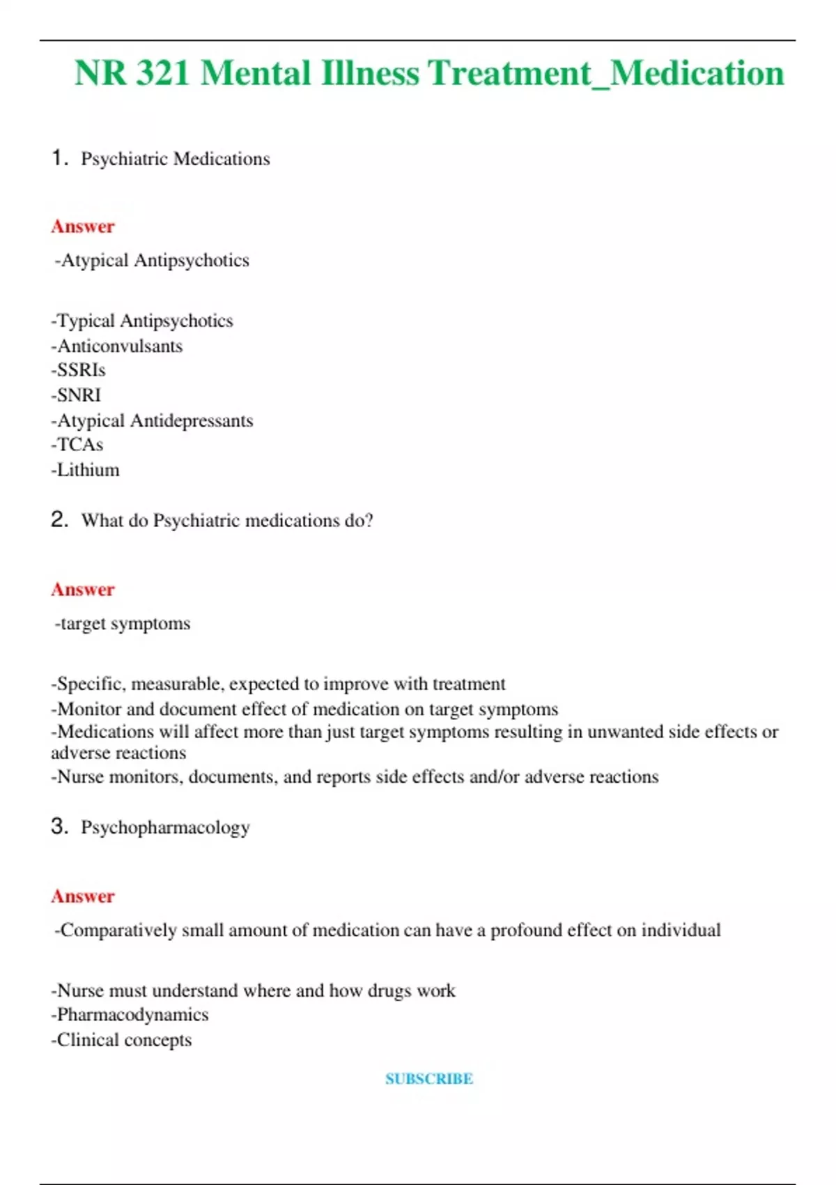 NR 321 Mental Illness Treatment_Medication (Latest 2024 / 2025) Questions and Answers (Verified Answers)