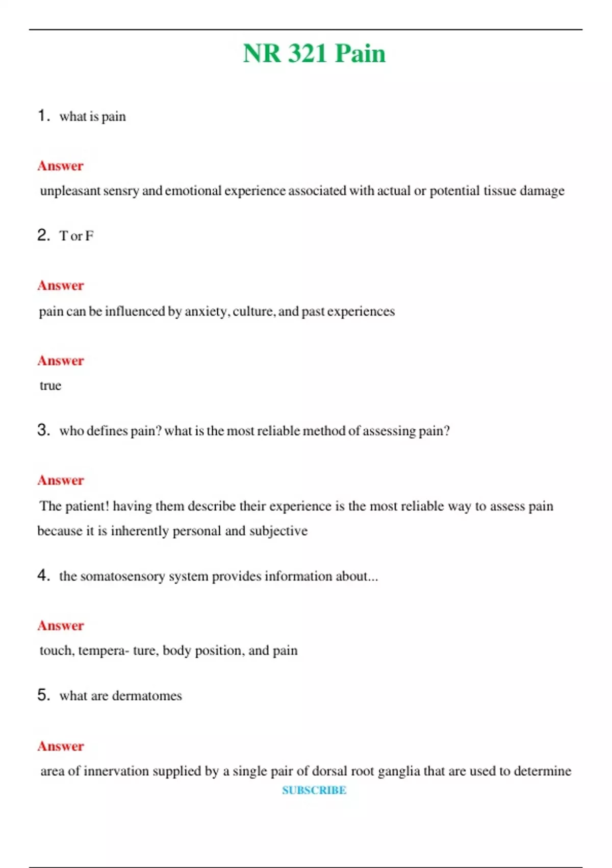 NR 321 Pain (Latest 2024 / 2025) Questions and Answers (Verified Answers)
