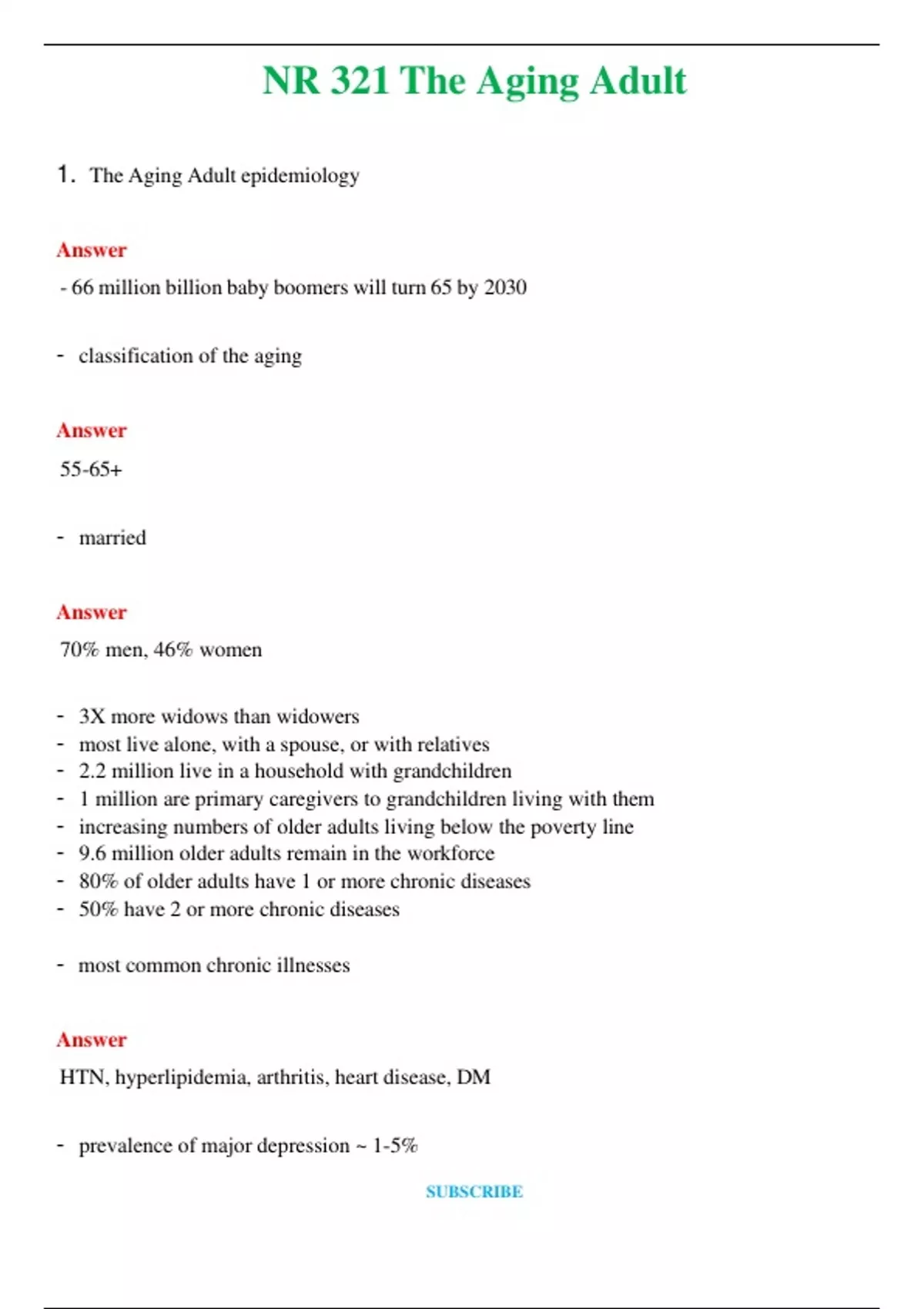 NR 321 The Aging Adult (Latest 2024 / 2025) Questions and Answers (Verified Answers)