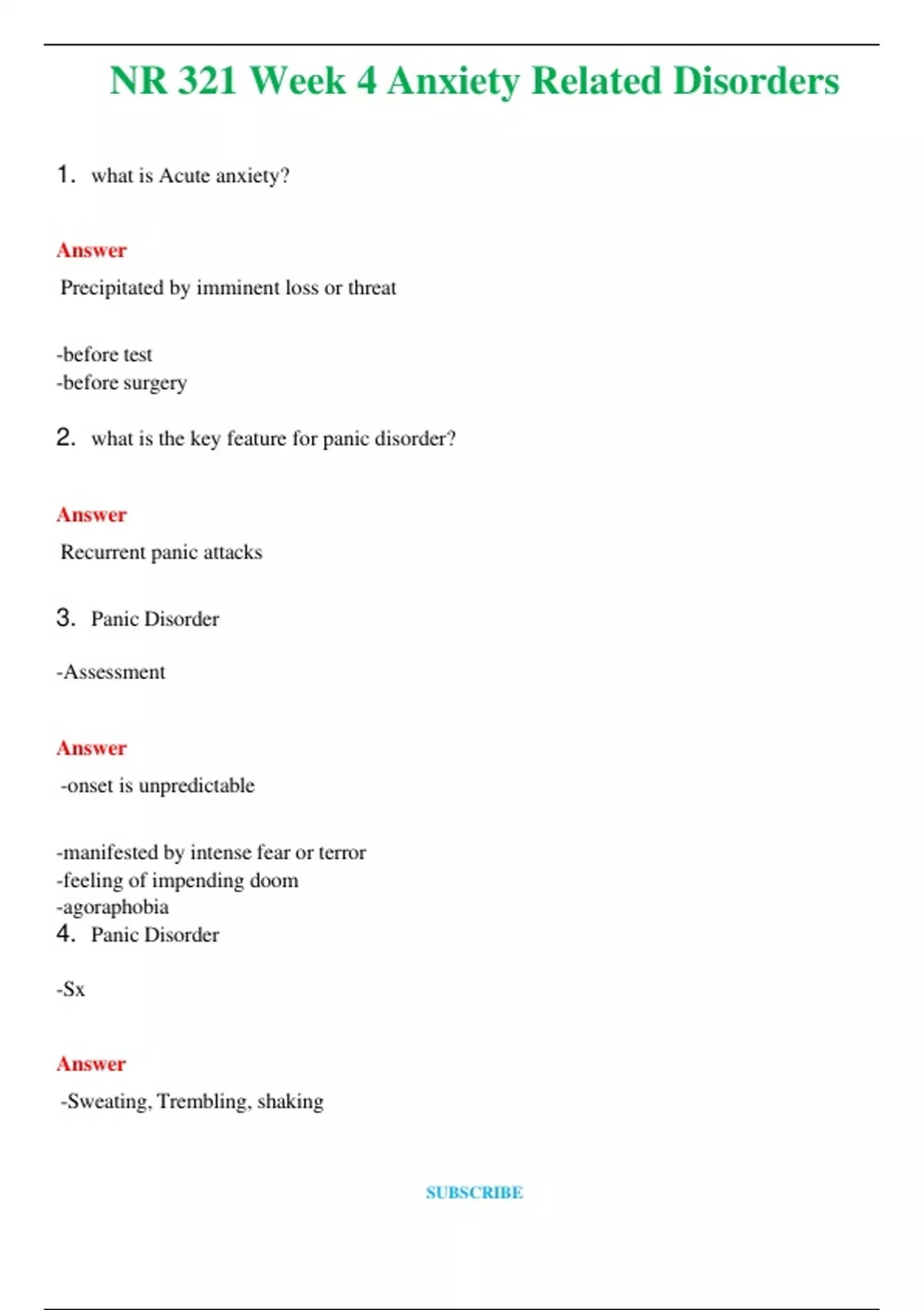 NR 321 Week 4 Anxiety Related Disorders (Latest 2024 / 2025) Questions and Answers (Verified Answers)