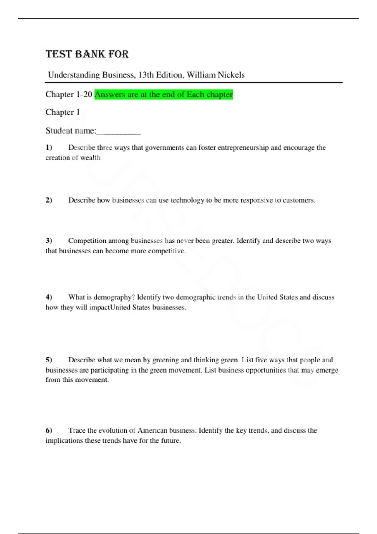 test bank for understanding business 13th edition