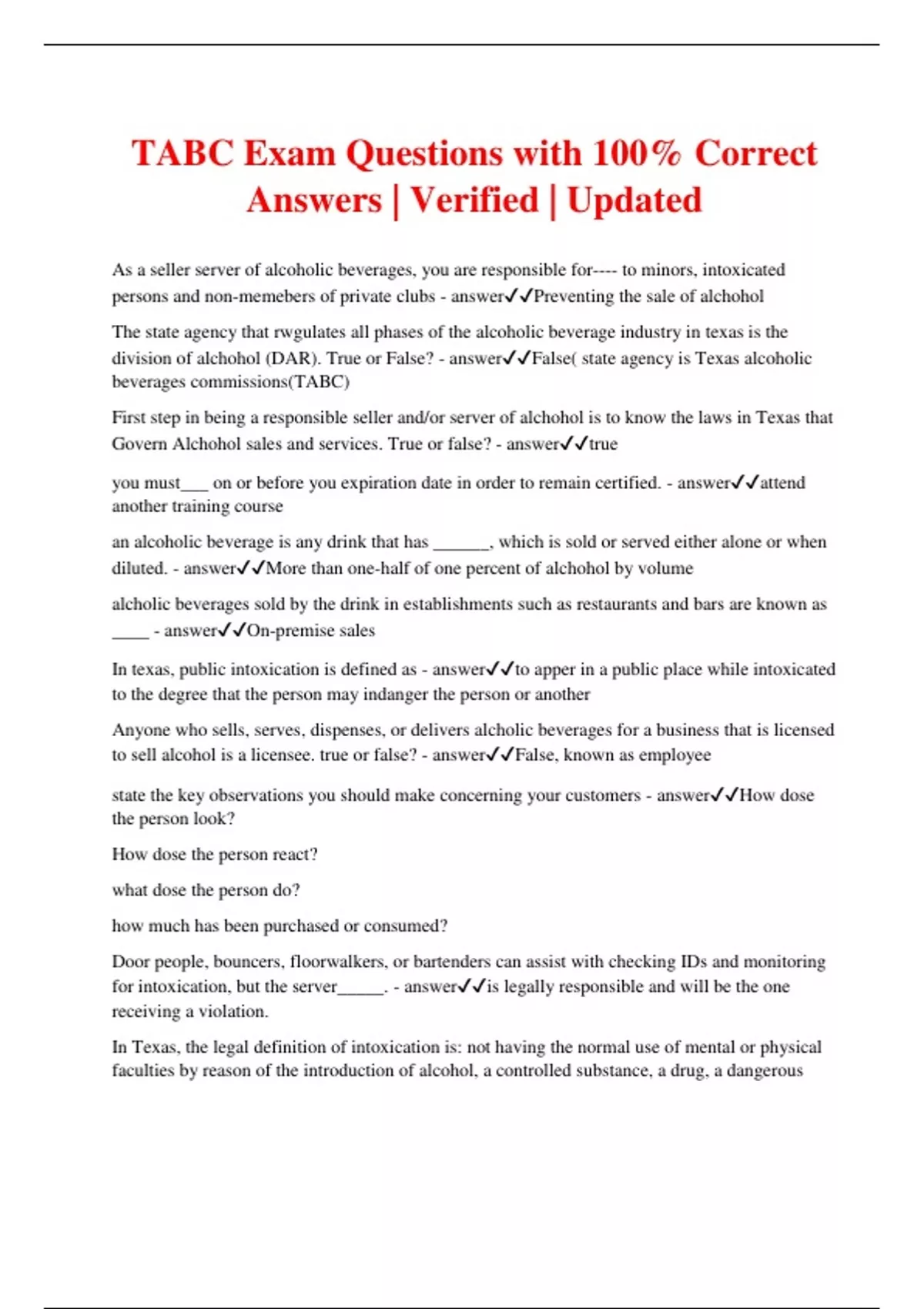 TABC Exam Questions with 100% Correct Answers | Verified | Updated