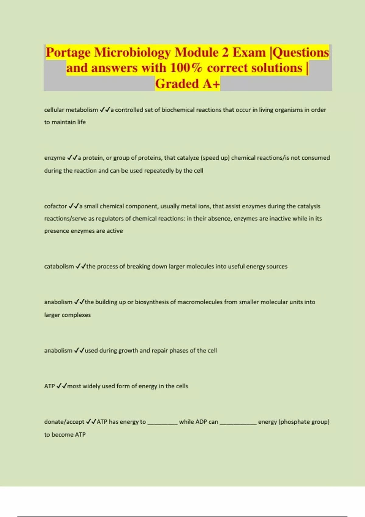 Portage Microbiology Module 2 Exam |Questions and answers with 100% correct solutions | Graded A+