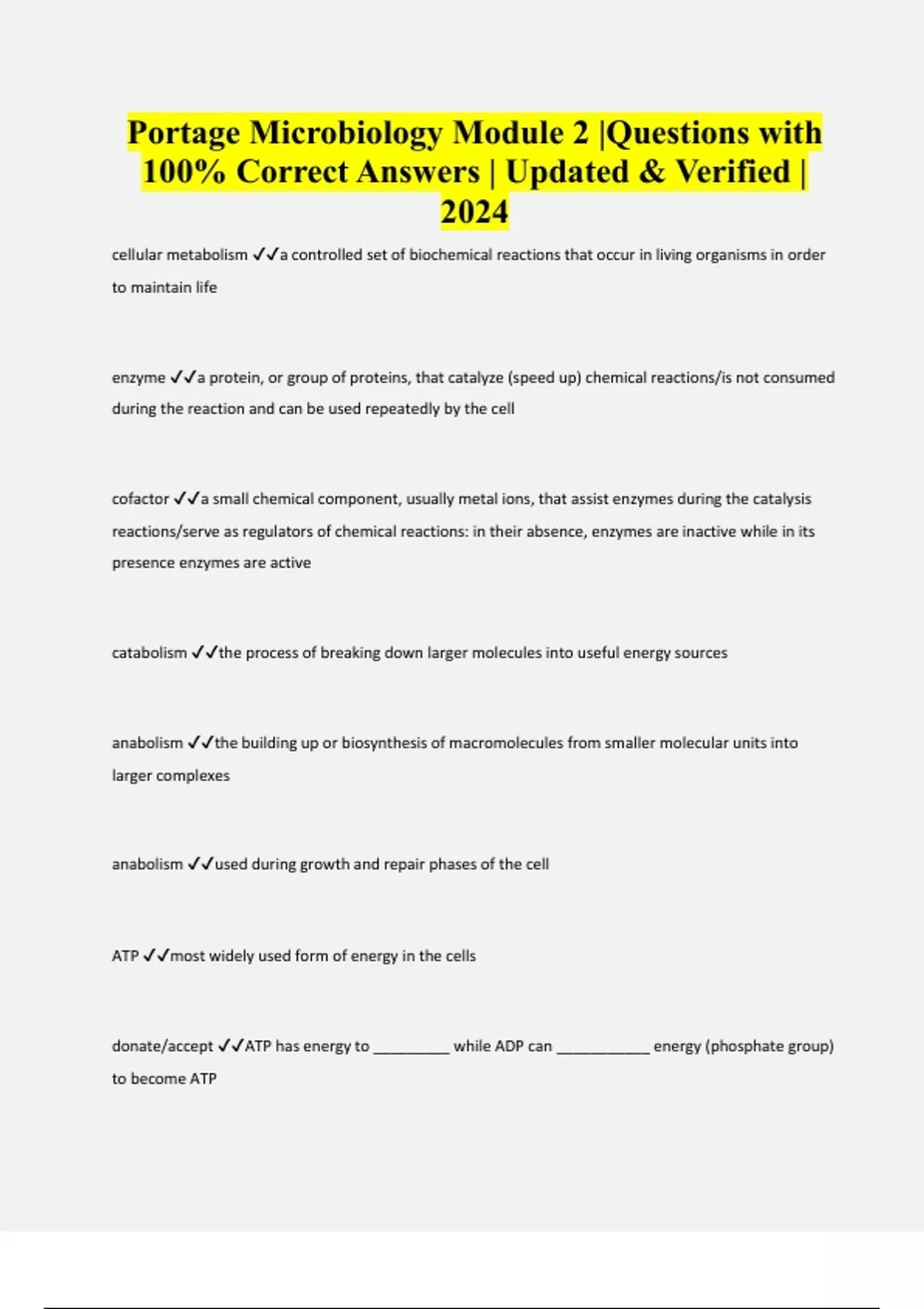Portage Microbiology Module 2 |Questions with 100% Correct Answers | Updated & Verified | 2024