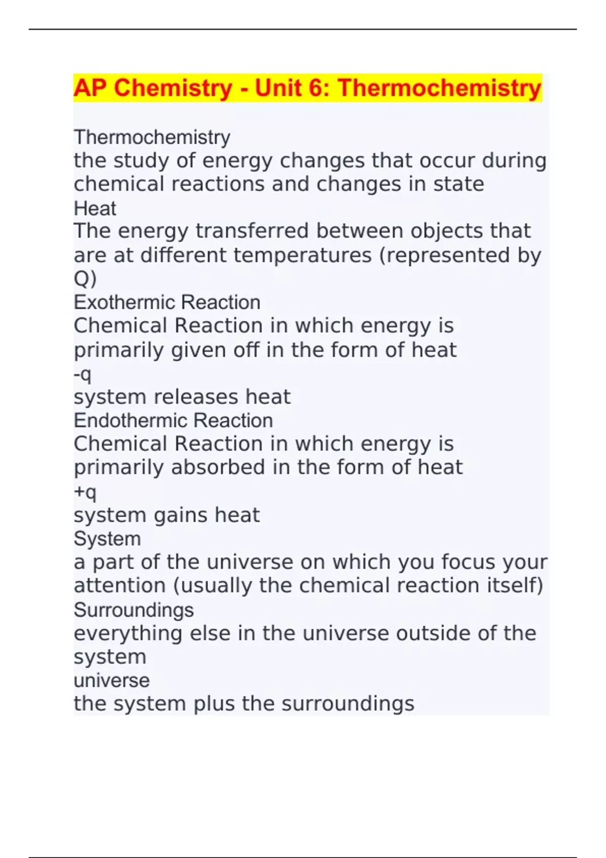 AP Chemistry - Unit 6: Thermochemistry