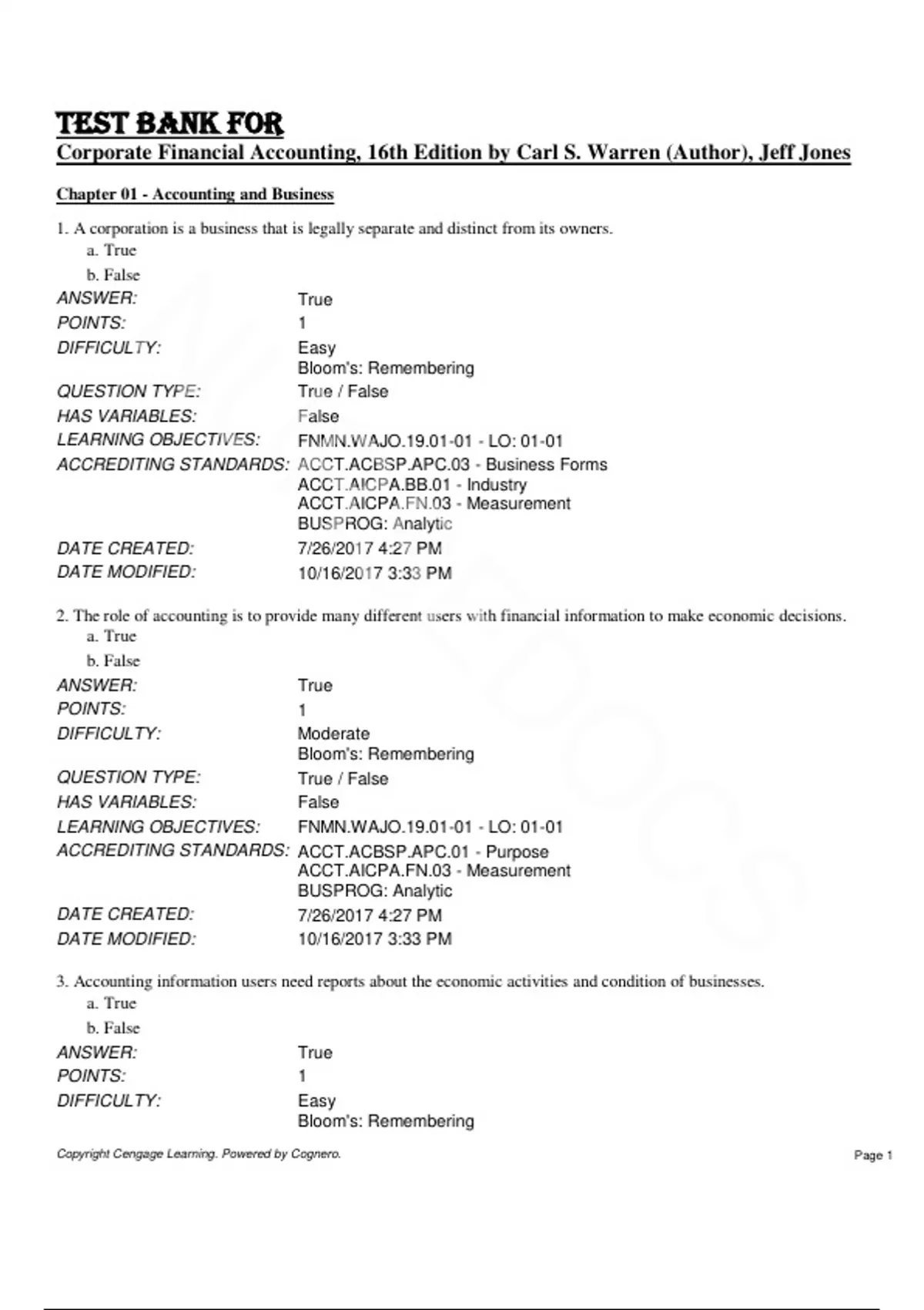 Test Bank for Corporate Financial Accounting, 16th Edition by Carl S. Warren, Jeff Jones