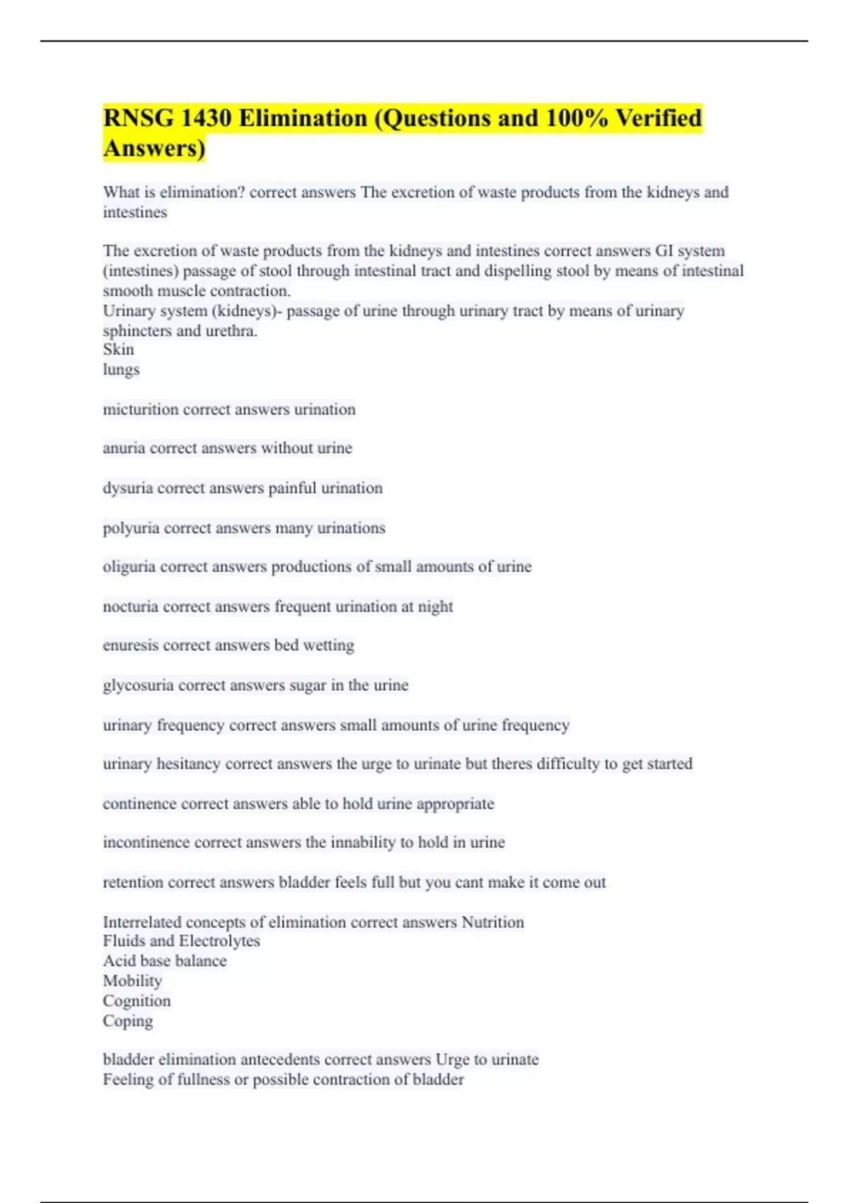 RNSG 1430 Elimination (Questions and 100% Verified Answers)