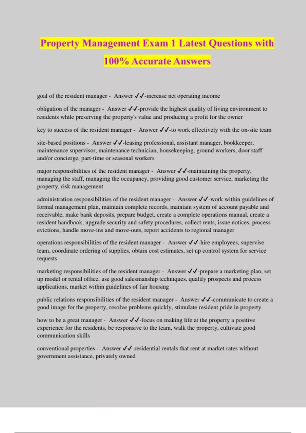 Property Management Exam 1 Latest Questions with 100% Accurate Answers