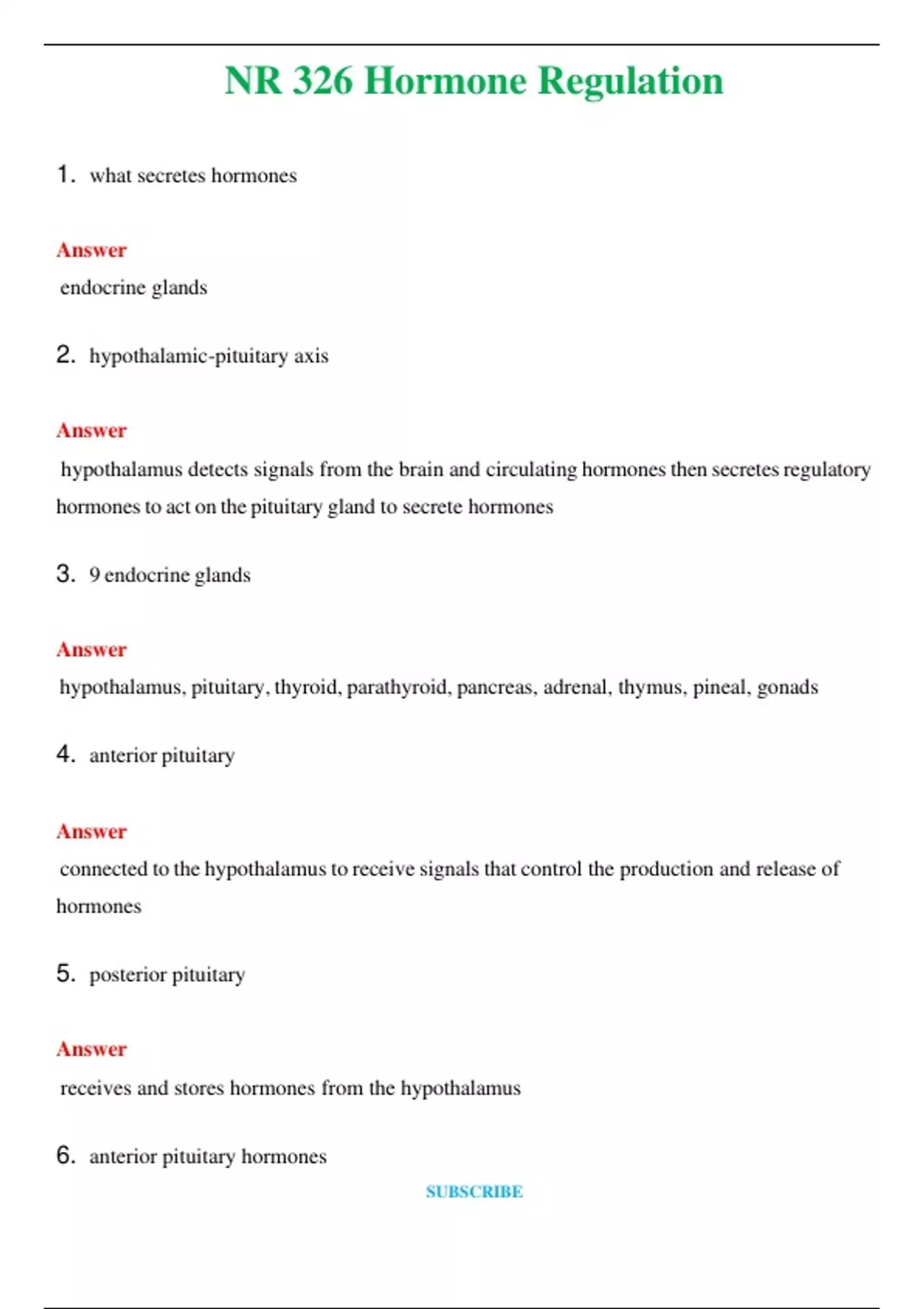 NR 326 Hormone Regulation (Latest 2024 / 2025) Questions and Answers (Verified Answers)