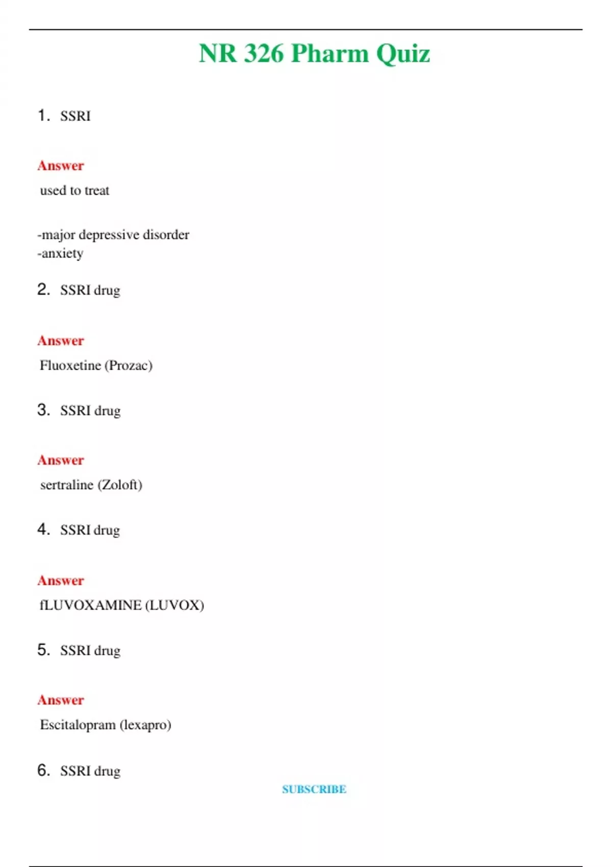NR 326 Pharm Quiz (Latest 2024 / 2025) Questions and Answers (Verified Answers)