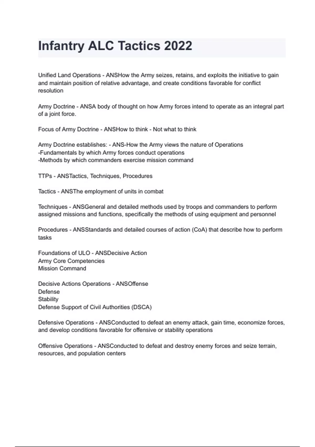 Infantry ALC Tactics 2024/2025 graded A+ by experts