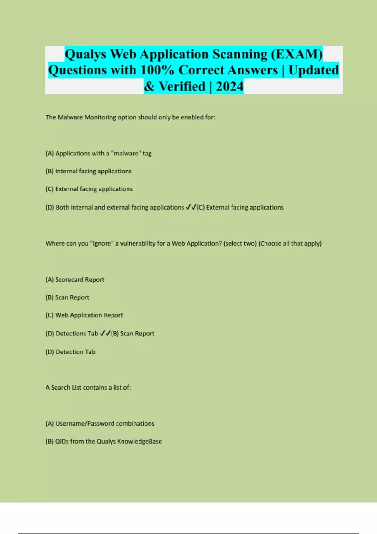 Qualys Web Application Scanning (EXAM) Questions with 100% Correct Answers | Updated & Verified | 2024
