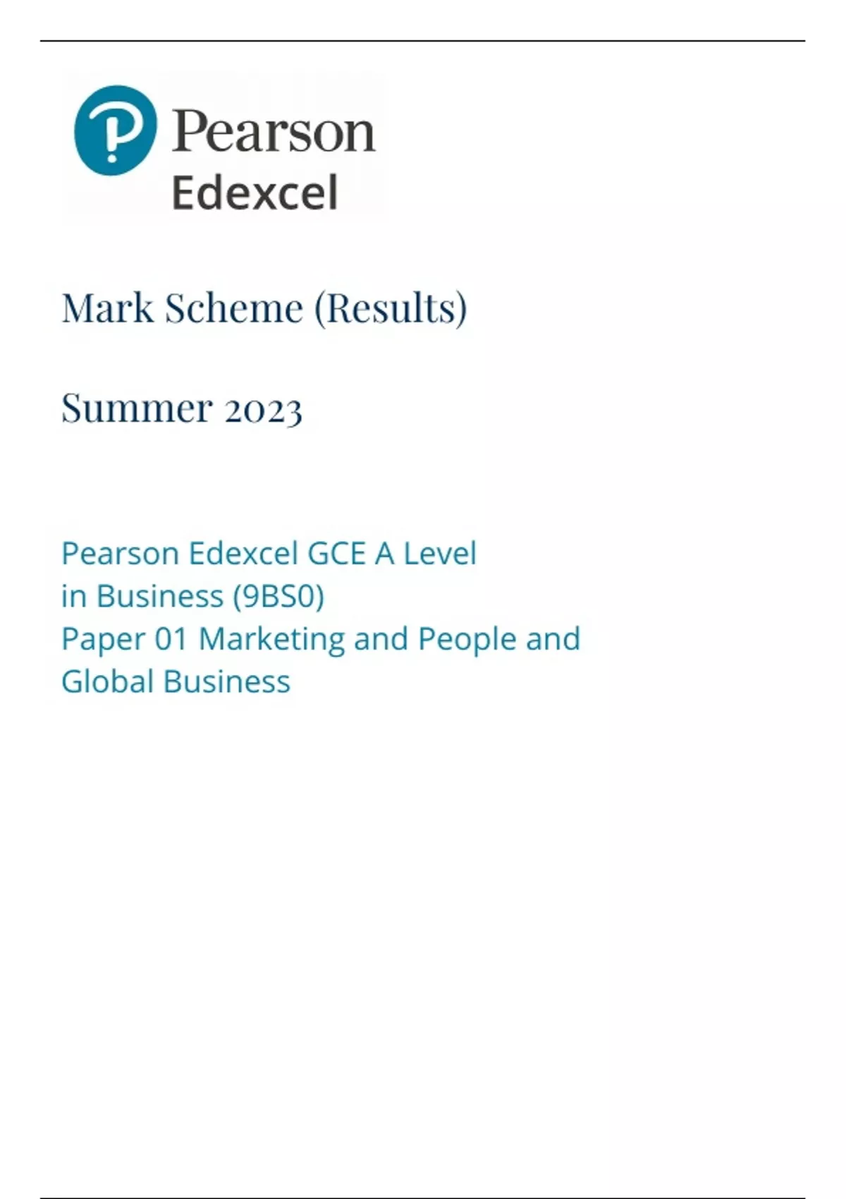 Pearson Edexcel GCE A Level Business paper 1(9BS0/01:Marketing and People and Global Business)Mark scheme for June 2023