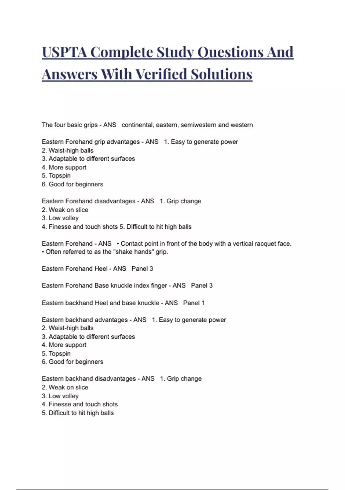 USPTA Complete Study Questions And Answers With Verified Solutions