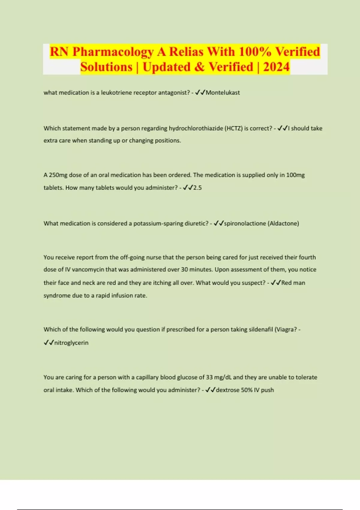 RN Pharmacology A Relias With 100% Verified Solutions | Updated & Verified | 2024