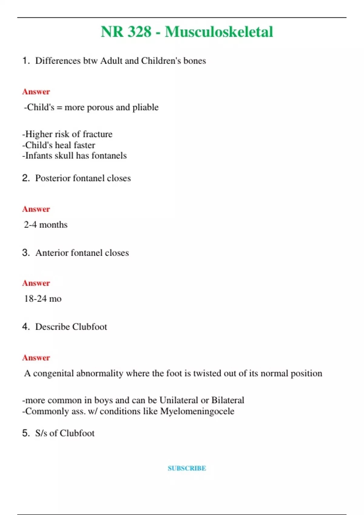 NR 328 - Musculoskeletal (Latest 2024 / 2025) Questions and Answers (Verified Answers)