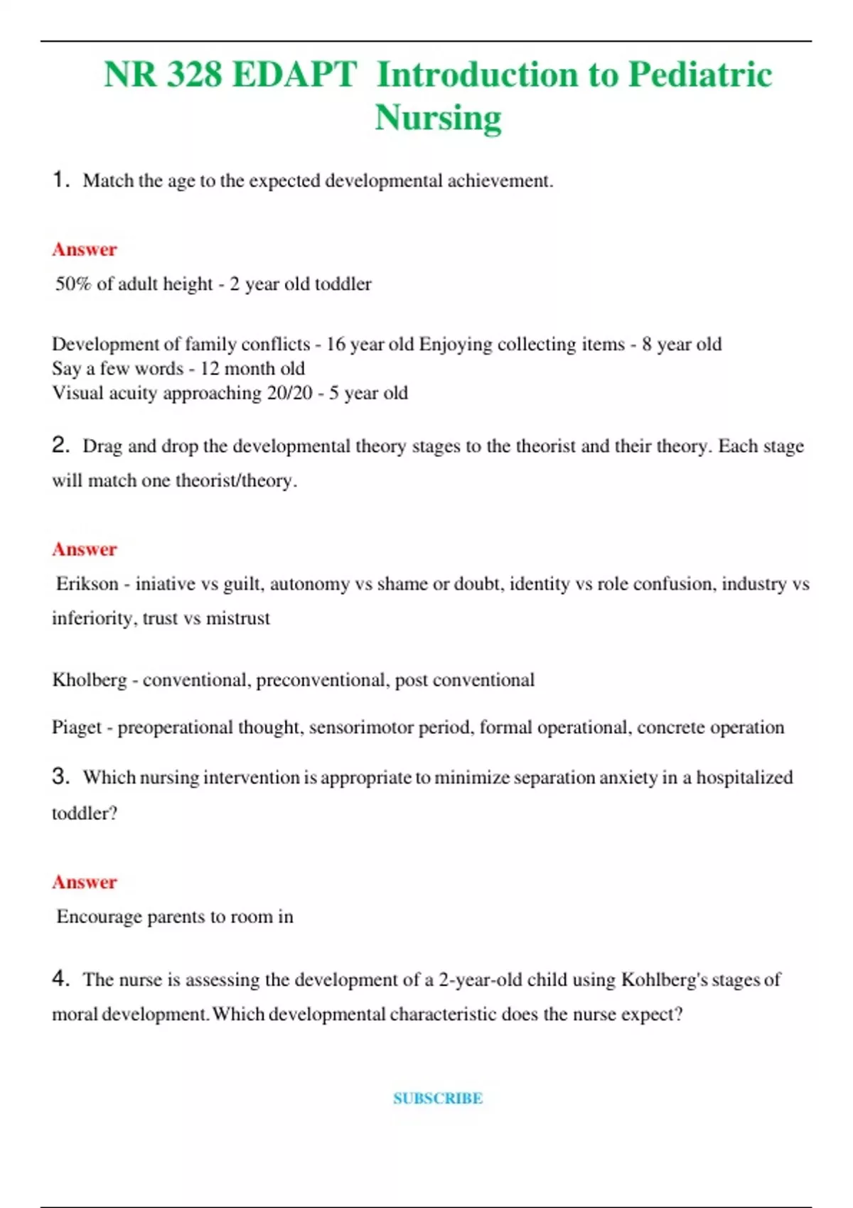 NR 328 EDAPT Introduction to Pediatric Nursing (Latest 2024 / 2025) Questions and Answers (Verified Answers)