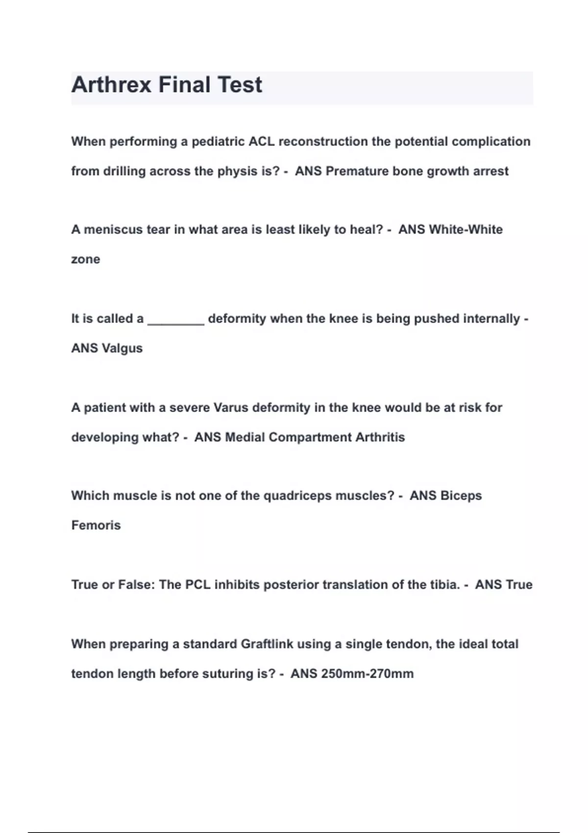 Arthrex Final Test Questions & Answers 2024 ( A+ GRADED 100% VERIFIED)