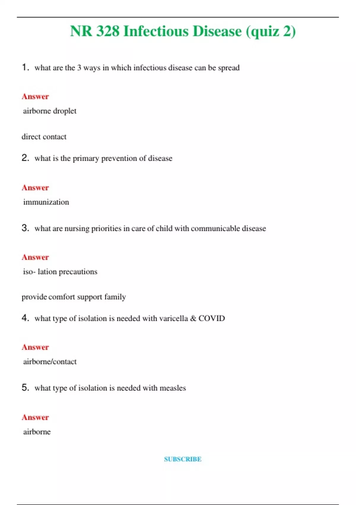 NR 328- Infectious Disease (quiz 2) (Latest 2024 / 2025) Questions and Answers (Verified Answers)