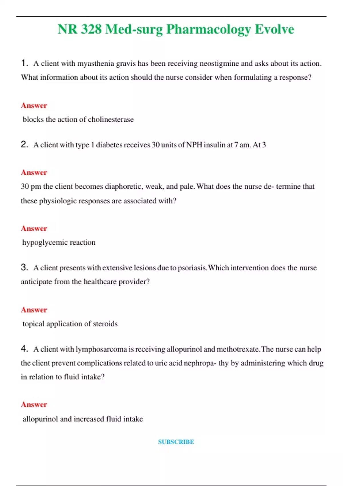 NR 328 Med-surg Pharmacology Evolve (Latest 2024 / 2025) Questions and Answers (Verified Answers)