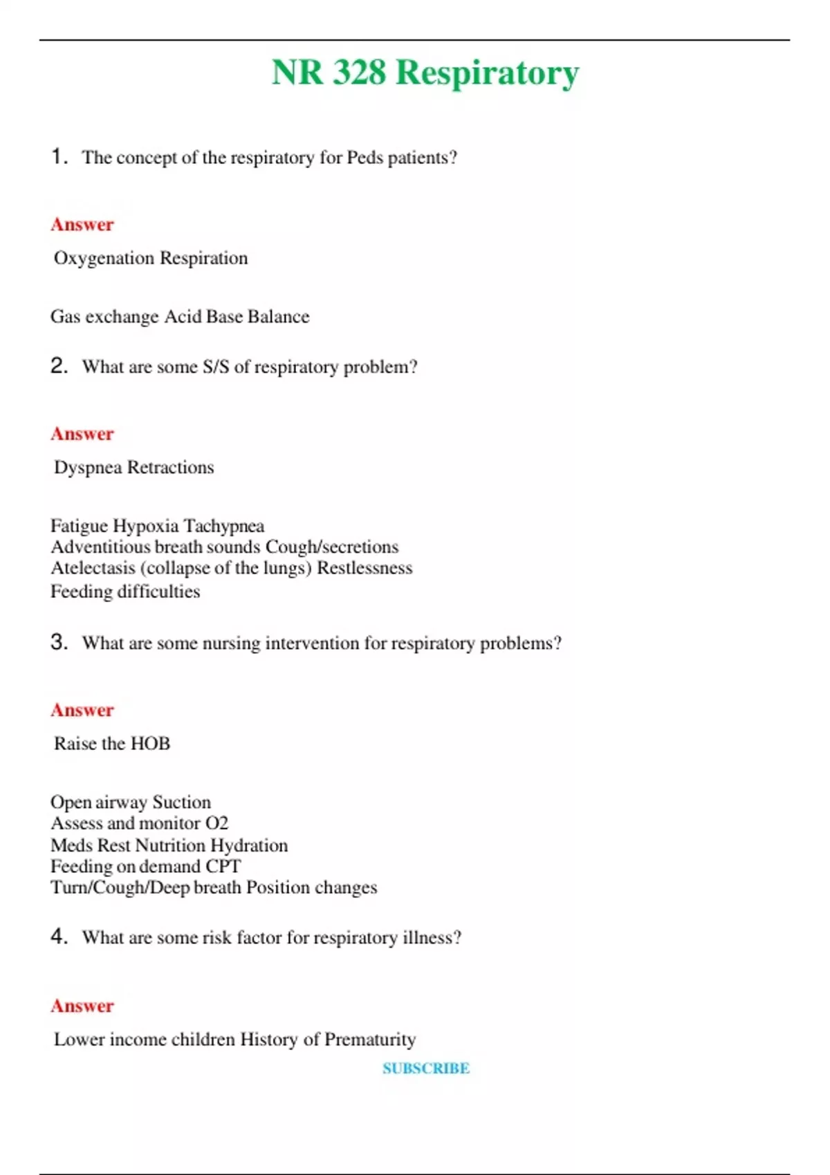 NR 328 Respiratory (Latest 2024 / 2025) Questions and Answers (Verified Answers)