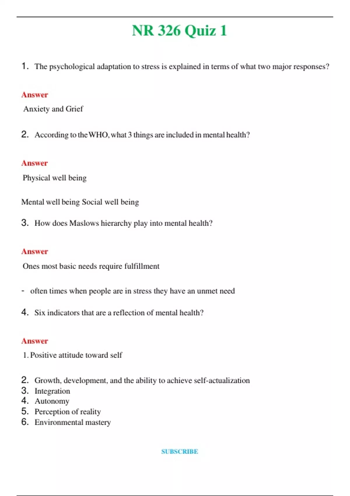 NR 326 Quiz 1 (Latest 2024 / 2025) Questions and Answers (Verified Answers)