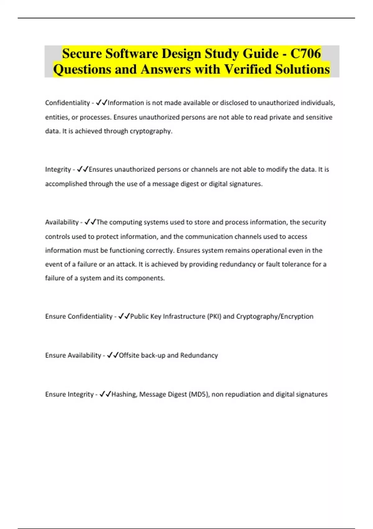 Secure Software Design Study Guide - C706 Questions and Answers with Verified Solutions