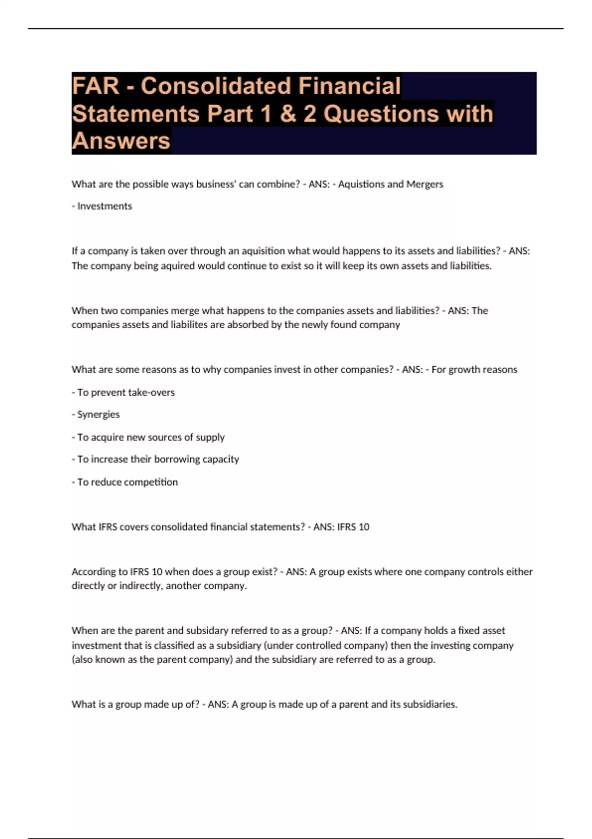 FAR - Consolidated Financial Statements Part 1 & 2 Questions with Answers