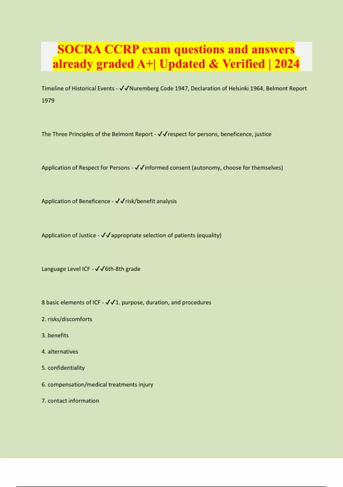 SOCRA CCRP exam questions and answers already graded A+| Updated & Verified | 2024