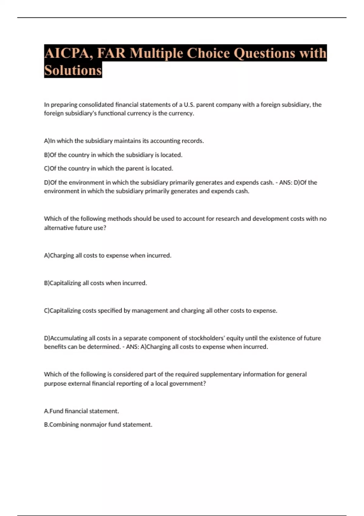 AICPA, FAR Multiple Choice Questions with Solutions.