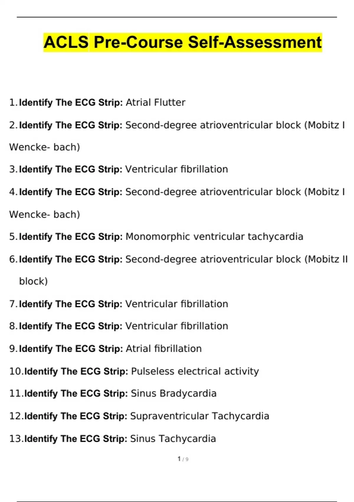 ACLS Pre-Course Self-Assessment Exam Questions and Answers Latest (2024 / 2025) (Verified Answers by Expert)